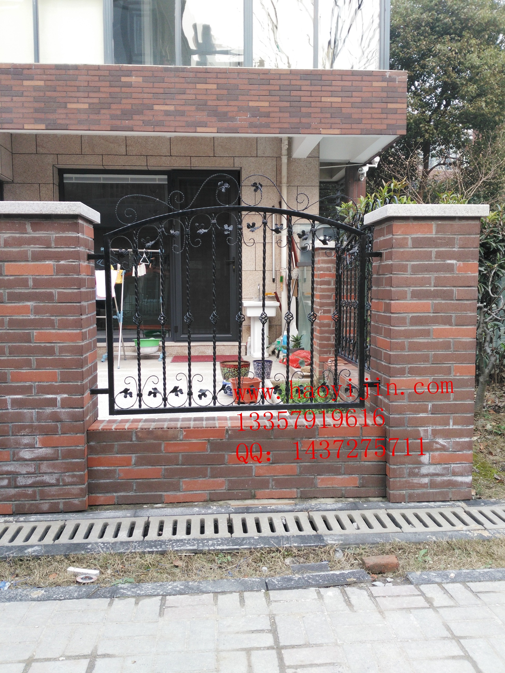 鐵藝圍墻的設計采用了拱形結構,整體呈現出一種優雅的風格。鐵藝圍墻上裝飾有復雜的卷曲花紋,這些花紋均勻地分布在圍墻的框架上,給人一種精致且藝術感十足的感覺。 鐵藝圍墻不僅具有實用性,能夠起到安全防護的作用,同時也是一件藝術品,展示了鐵藝工匠的高超技藝和對細節的精心雕琢。